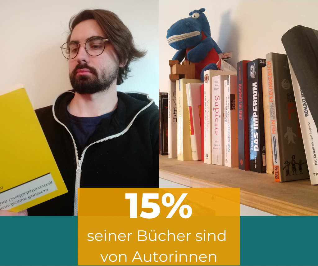„Sau peinlich. Eigentlich dachte ich immer, ich habe ein recht diverses Bücherregal. Wenn man nur Literatur von einem Geschlecht liest, fehlen einem doch so viele Perspektiven. Mein Ziel ist es, in den nächsten Jahren mehr Bücher von weiblichen, queeren und nicht-weißen Autor*innen zu lesen.“